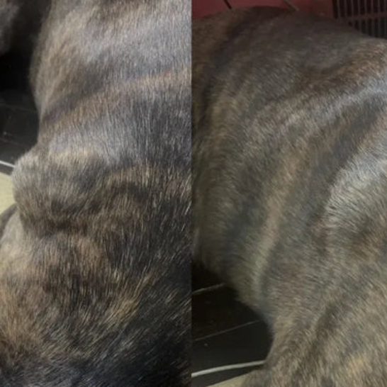 "il avait un lipome sur l'oreille depuis plus de 5 mois. Même avec mon expérience d'assistante vétérinaire, je n'y croyais pas. Après 3 semaines de Lipocure, la boule a visiblement réduit. Je suis bluffée."